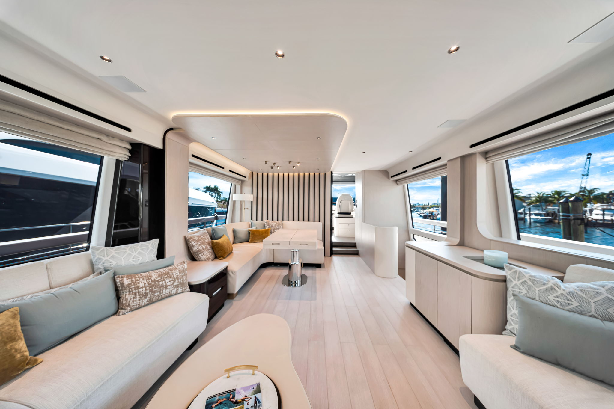 The 80ft Azimut is a stunning blend of Italian innovation, sporty elegance, and luxurious comfort. With its sleek profile, spacious indoor-outdoor living areas, and advanced performance capabilities, this yacht offers the ultimate setting for both entertaining and relaxing. Whether you're planning a special occasion or a stylish day out on the water, the Azimut delivers an unforgettable experience. Suggested Itinerary: Departing from North Bay Village, this charter gives you prime access to Miami’s most scenic and exclusive boating destinations. Morning: Begin your cruise along the Intracoastal Waterway, taking in the beautiful homes of Normandy Shores, Indian Creek, and Surfside. Lounge on the sunpads or enjoy breakfast on the aft deck as the vibrant city slowly fades into the tranquility of the bay. Midday: Anchor at the Haulover Sandbar, just a short ride away. Swim in the shallow turquoise waters, float on the oversized water mat, or soak up the sun on the spacious deck. The Azimut’s swim platform and generous lounge areas offer the perfect space for socializing and unwinding. Afternoon: Explore the quieter corners of Oleta River State Park or cruise south toward Hibiscus Island and Flagler Monument Island for a blend of nature and city views. Enjoy a catered lunch onboard or bring your own picnic for a chic outdoor dining experience. Evening: As the sun begins to set, cruise leisurely through the calm waters with the Miami skyline glowing in the distance. Sip cocktails on the flybridge or relax in the salon as the day winds down in effortless luxury. Details: Up to 13 guests to comply with regulations 4 bedrooms / 4 bathrooms Includes Captain, Steward, Water, Sodas, Ice, Towels Bluetooth Sound System Check the calendar before you finalize your booking Multi-day charters: Need to add APA (advance provisioning allocation)