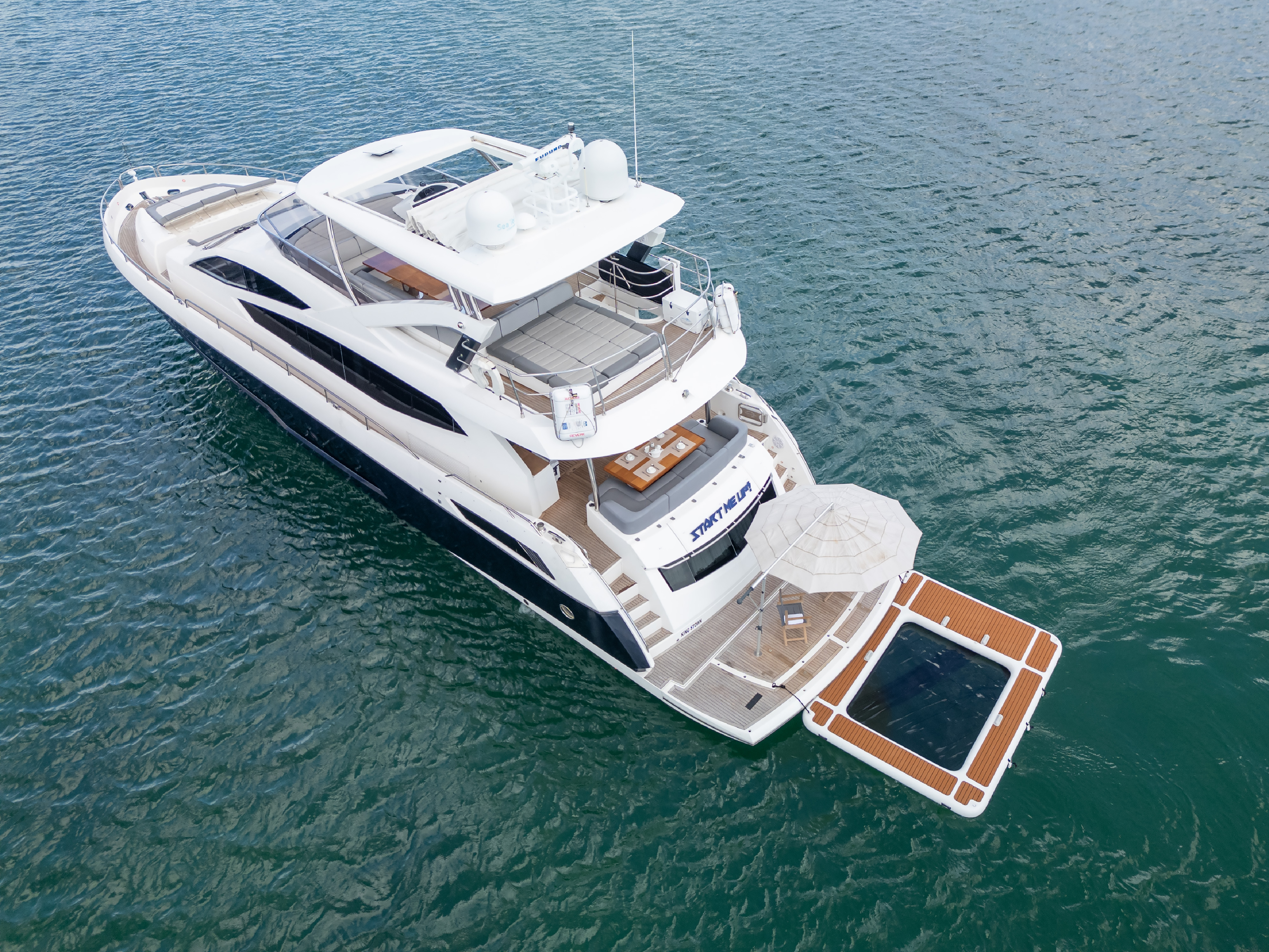 The 2014 Sunseeker 80 Yacht is a striking blend of British craftsmanship, sleek performance, and upscale comfort. Known for Sunseeker’s iconic sporty profile and elegant interior design, this 80-footer delivers a true superyacht experience while remaining agile enough for both day cruising and longer adventures across Florida and the Bahamas. With her generous size, refined materials, and spacious entertainment areas, she is perfectly suited for guests seeking the highest level of comfort on the water. Powered by twin MAN engines, the Sunseeker 80 offers impressive speed, exceptional stability, and smooth handling — ideal for exploring Biscayne Bay, cruising along Miami’s coastline, or embarking on multi-day island escapes. Departing from Miami Beach Marina, you’ll begin your journey right in the heart of South Beach, surrounded by luxury yachts, world-famous views, and direct access to the open ocean. Her expansive flybridge is a standout feature, offering an elevated helm station, sun loungers, large seating areas, a wet bar, and a shaded alfresco dining setup. This space is perfect for entertaining, relaxing under the sun, or enjoying 360° panoramic views of Miami and the surrounding waters. The aft cockpit seamlessly connects to the open and bright salon through wide glass doors, blending indoor and outdoor living with the signature Sunseeker elegance. Below deck, the Sunseeker 80 boasts a 4-cabin layout, including a full-beam master stateroom, a forward VIP suite, and two guest cabins — all designed with premium materials and refined styling. The yacht’s generous volume, wide beam, and thoughtful layout make her ideal for multi-day charters to the Keys, Bimini, or the Exumas. Stylish, powerful, and exceptionally comfortable, the 2014 Sunseeker 80 Yacht offers an elevated luxury yachting experience, perfect for guests looking for a premium day charter or a multi-day escape from Miami Beach. Suggested Itinerary: Your luxury escape begins the moment you depart from Miami Beach Marina, one of the most iconic marinas in South Florida. Morning: Cruise along the South Beach waterfront, passing Fisher Island, Star Island, and the Port of Miami. Enjoy the yacht’s smooth ride and spacious bow sunpads as you take in the city’s glamorous skyline. If you prefer a more relaxed start, settle into the flybridge with a morning coffee and the fresh ocean breeze. Midday: Anchor in the crystal-clear waters of Biscayne Bay or head toward the lively Haulover Sandbar. With multiple entertainment areas and a spacious swim platform, the Sunseeker 80 is ideal for swimming, paddleboarding, snorkeling, or simply lounging while enjoying lunch prepared onboard. Afternoon: Explore the scenic waters around Key Biscayne or venture toward Stiltsville. The yacht’s generous outdoor spaces make it perfect for social gatherings, sunbathing, or enjoying the water toys. Whether you’re relaxing in the shade of the flybridge or soaking up the sun on the bow, every corner offers comfort and elegance. Evening: Cruise back toward Miami Beach as the skyline lights up in the golden sunset. Enjoy drinks and music on the flybridge or aft deck, making the most of the breathtaking views before returning to the marina. Details: Up to 13 guests (to comply with regulations) 4 staterooms / 4 bathrooms / 8 sleeps Captain + Stew/Chef (gratuity paid separately) Cooler, Ice, Sodas, Water & Towels included Bluetooth Sound System 2 Floating mat, 2 Inflatable unicorns, Floating pool Please check the calendar before finalizing your booking Multi-day charters: Need to add APA (advance provisioning allocation)