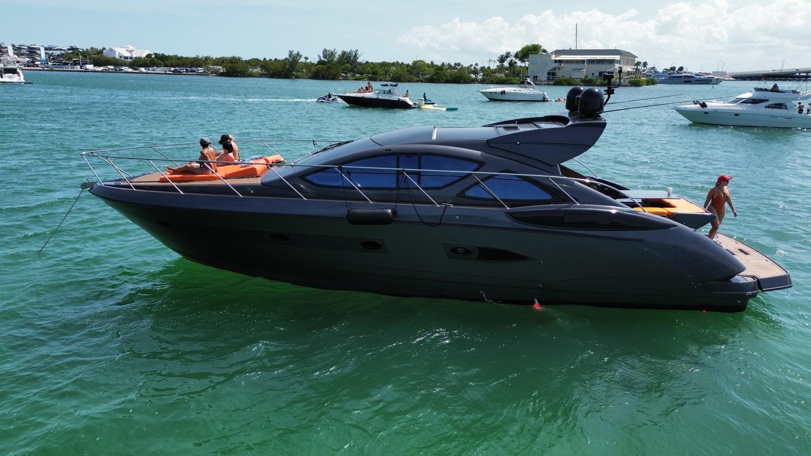 This sleek, high-performance Italian yacht combines elegant design with thrilling speed and expansive entertaining spaces—perfect for unforgettable day charters cruising the Miami River, Biscayne Bay, and beyond. Up to 13 guests can party like rockstars 🥳 on this modern beauty.