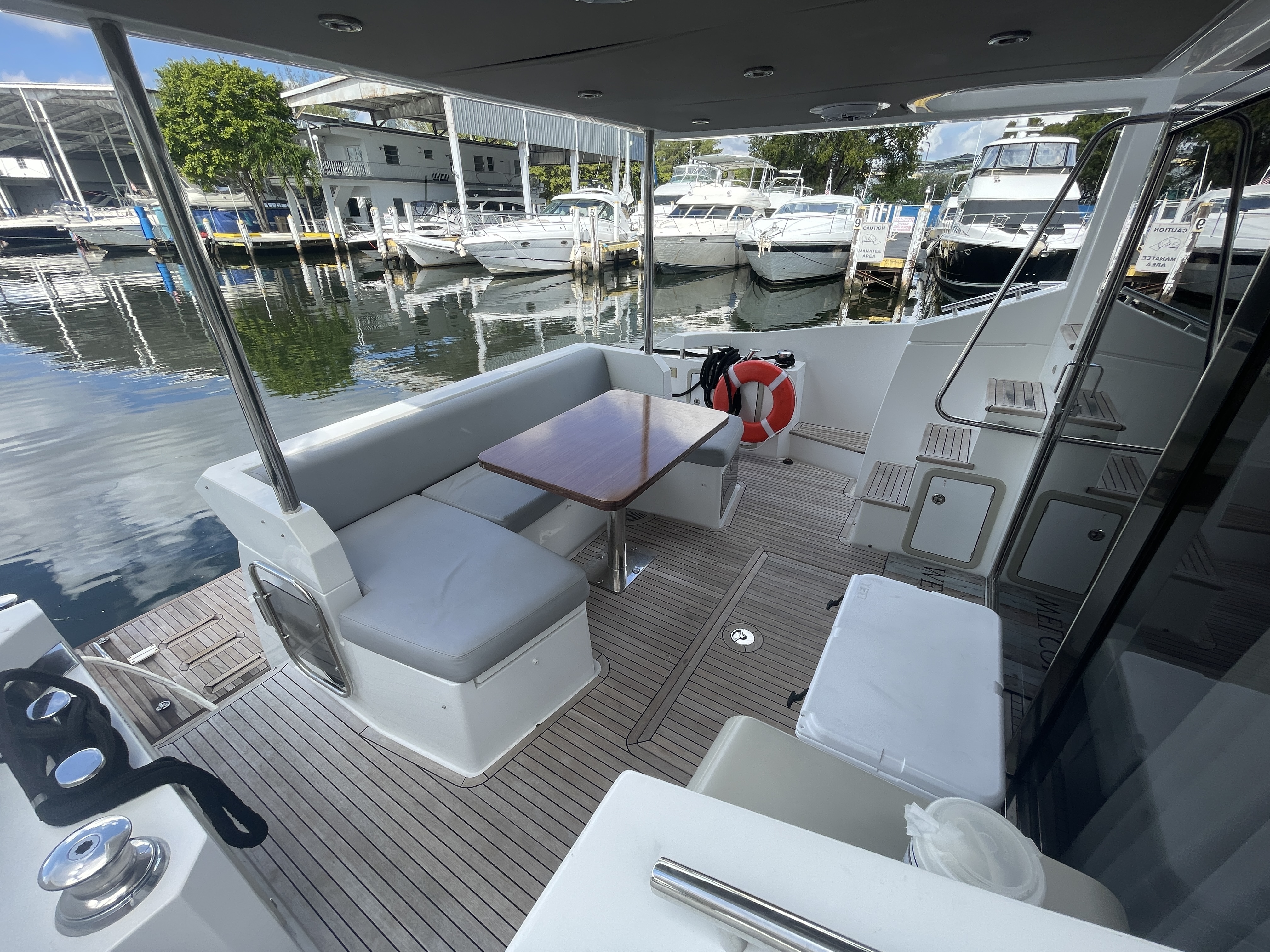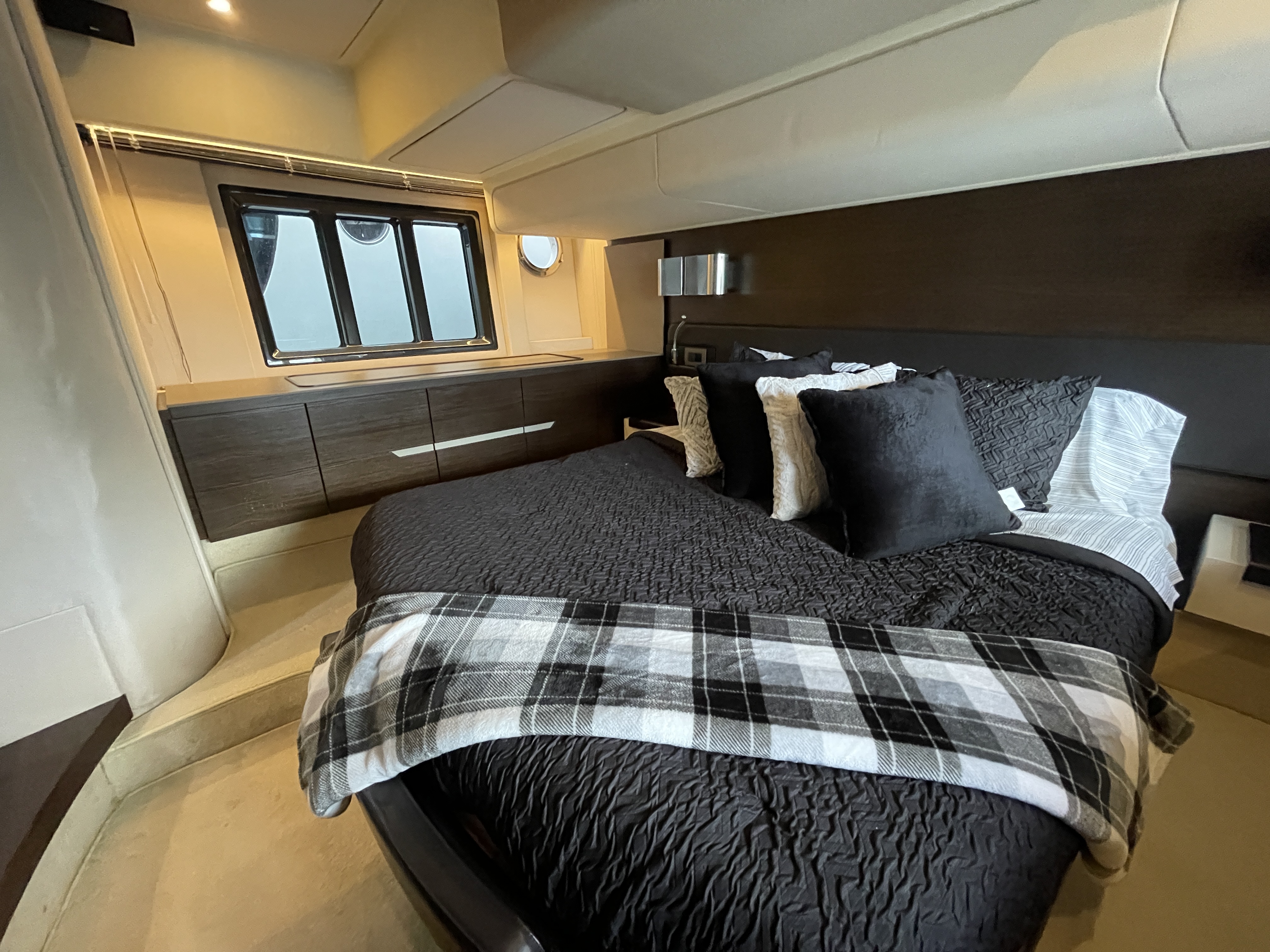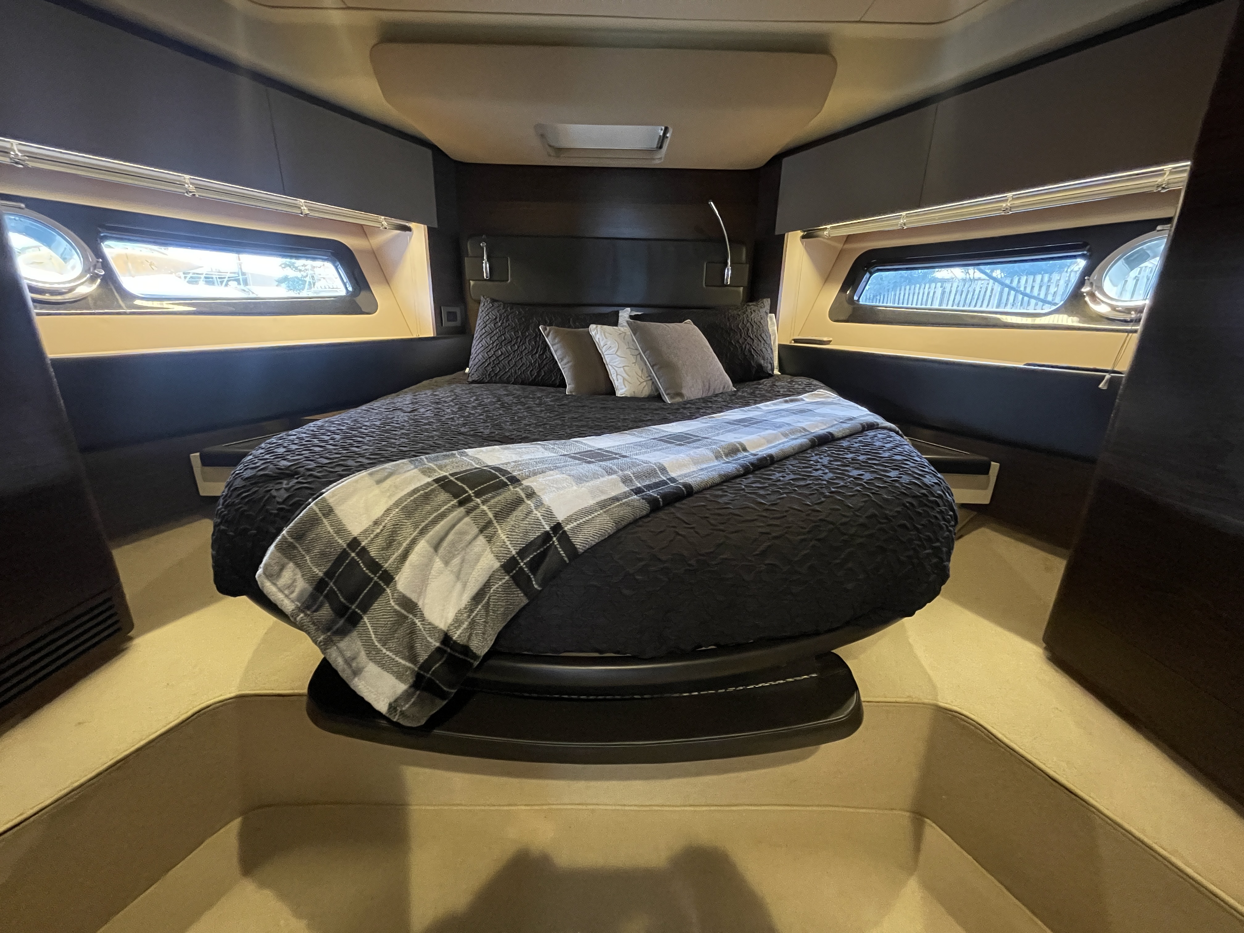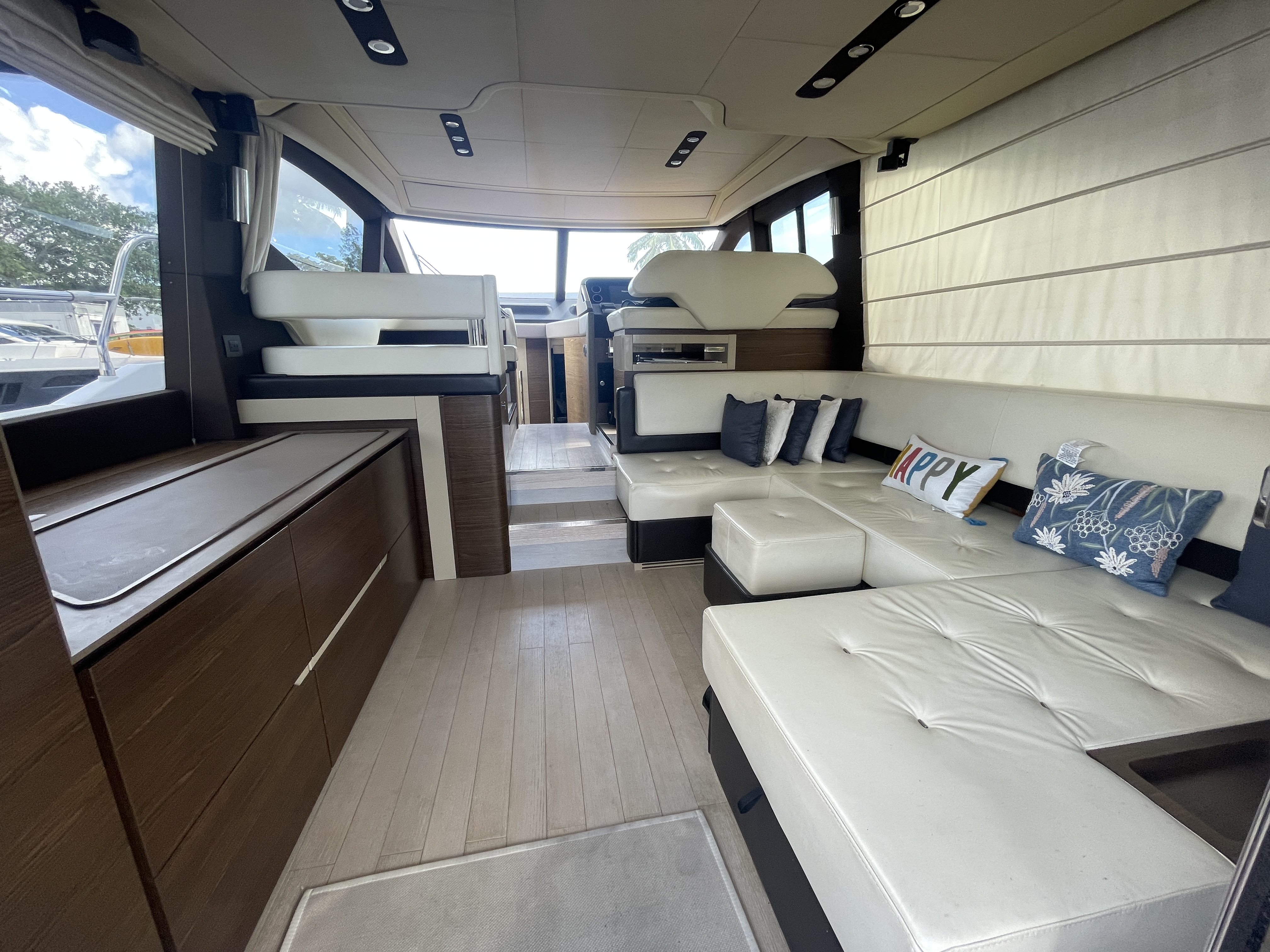 Valentine is the pinnacle of Italian Luxury and gives you the Mega Yacht experience in an affordable size. You and your guests will love the huge living space with the additional fly bridge and aft deck. The bow “front” of the boat is well padded and offers plenty of space for all your guests to comfortably enjoy the ride. On the stern “back” of the boat, the low platform makes is very easy to get in and out of the water. Upstairs, the “Lido Deck” provides a beautiful 360˚ view and plenty seating for 13. As mentioned, the Bow (front of the boat) has plenty of space for lounging, sitting, dancing or just hanging out. Play your favorite music with bluetooth on our professional grade JL Audio system.