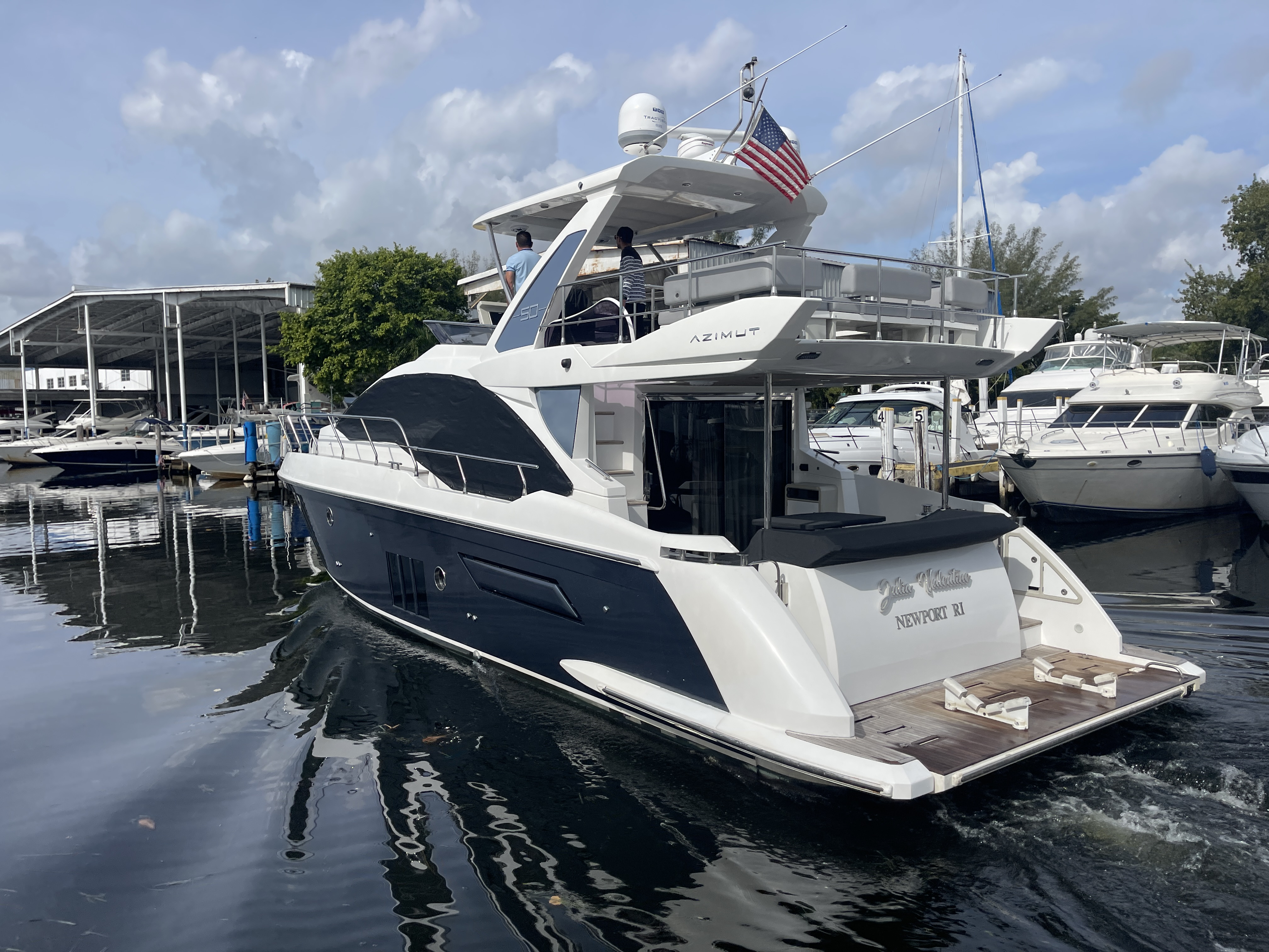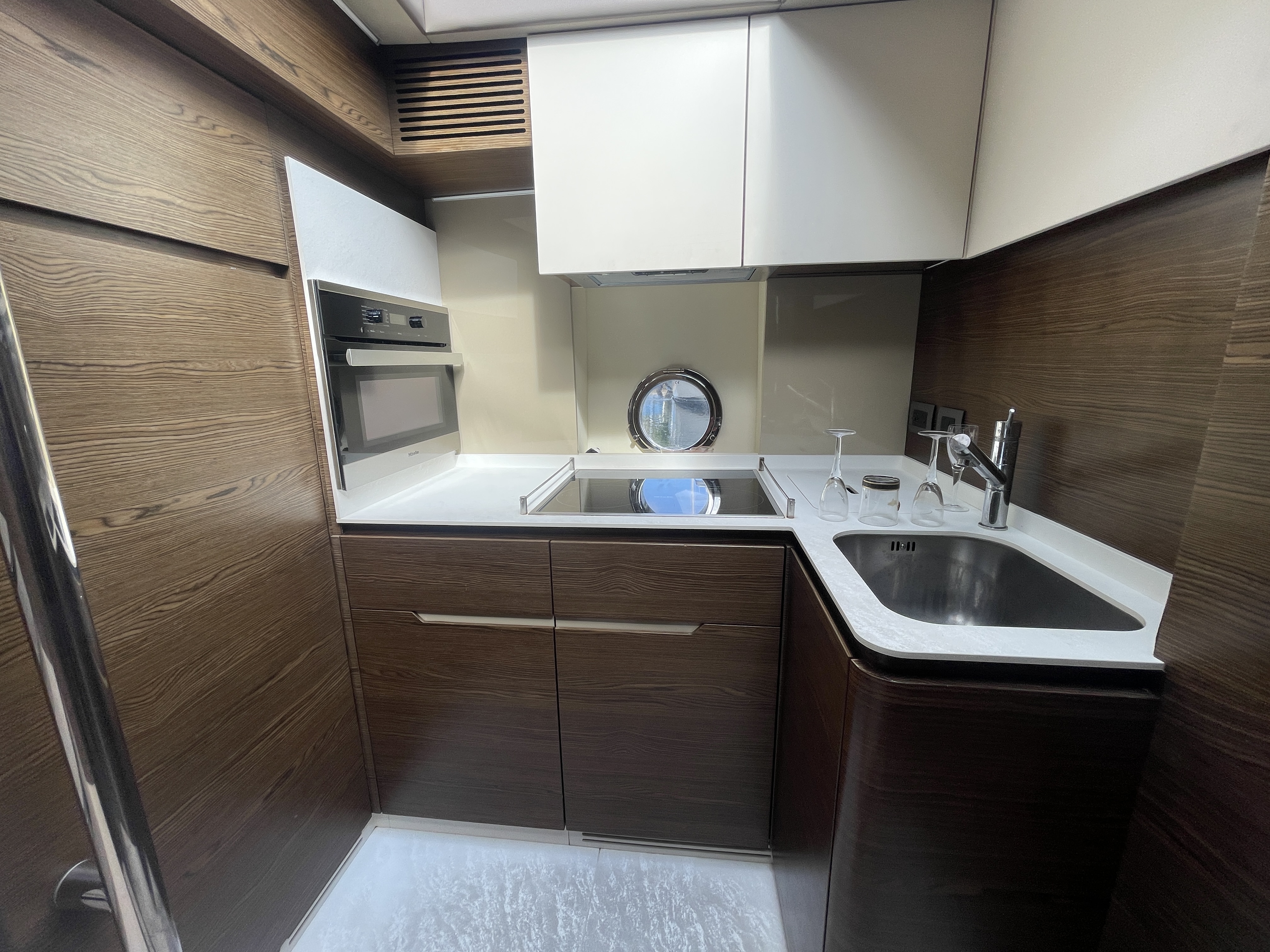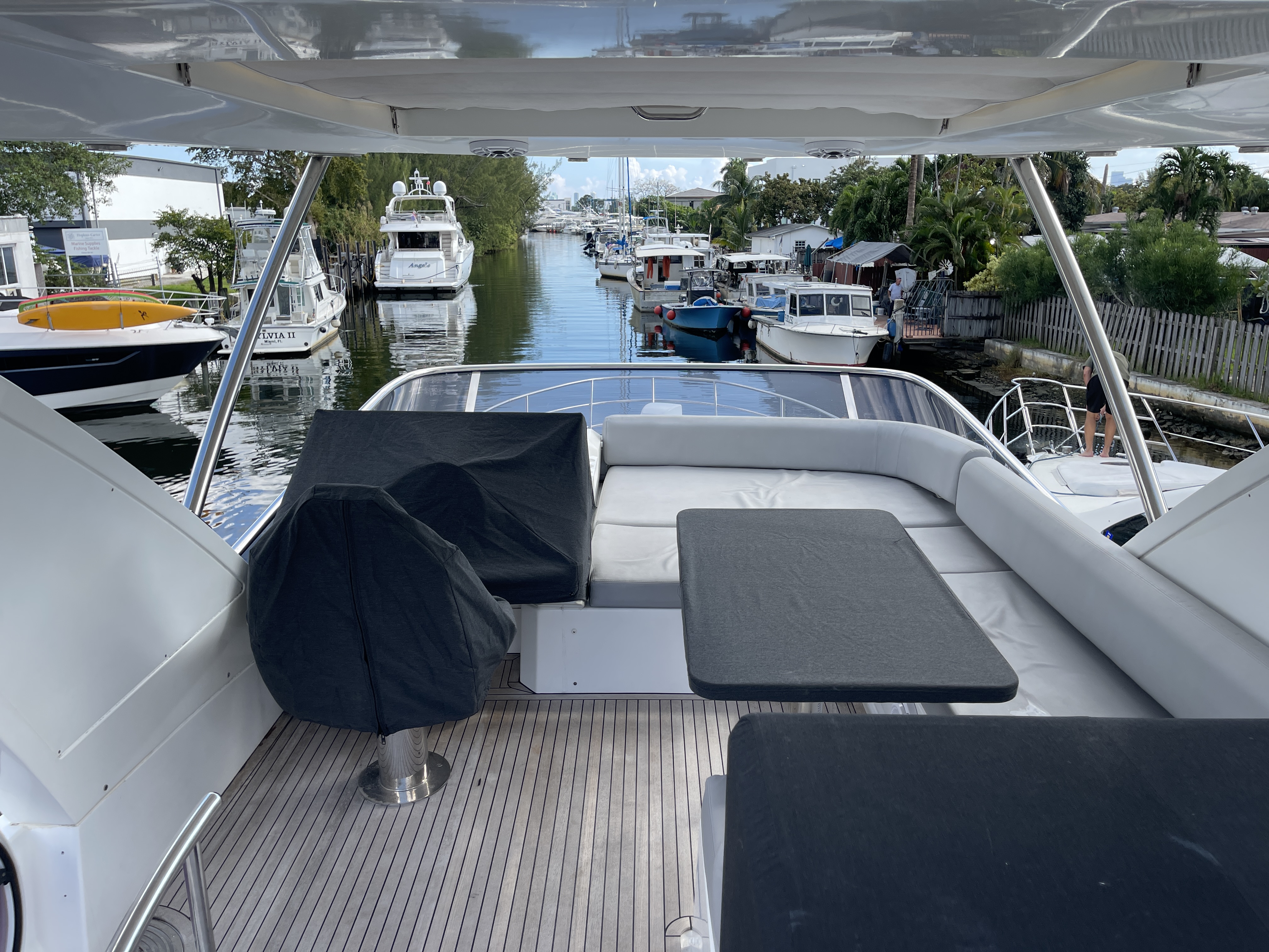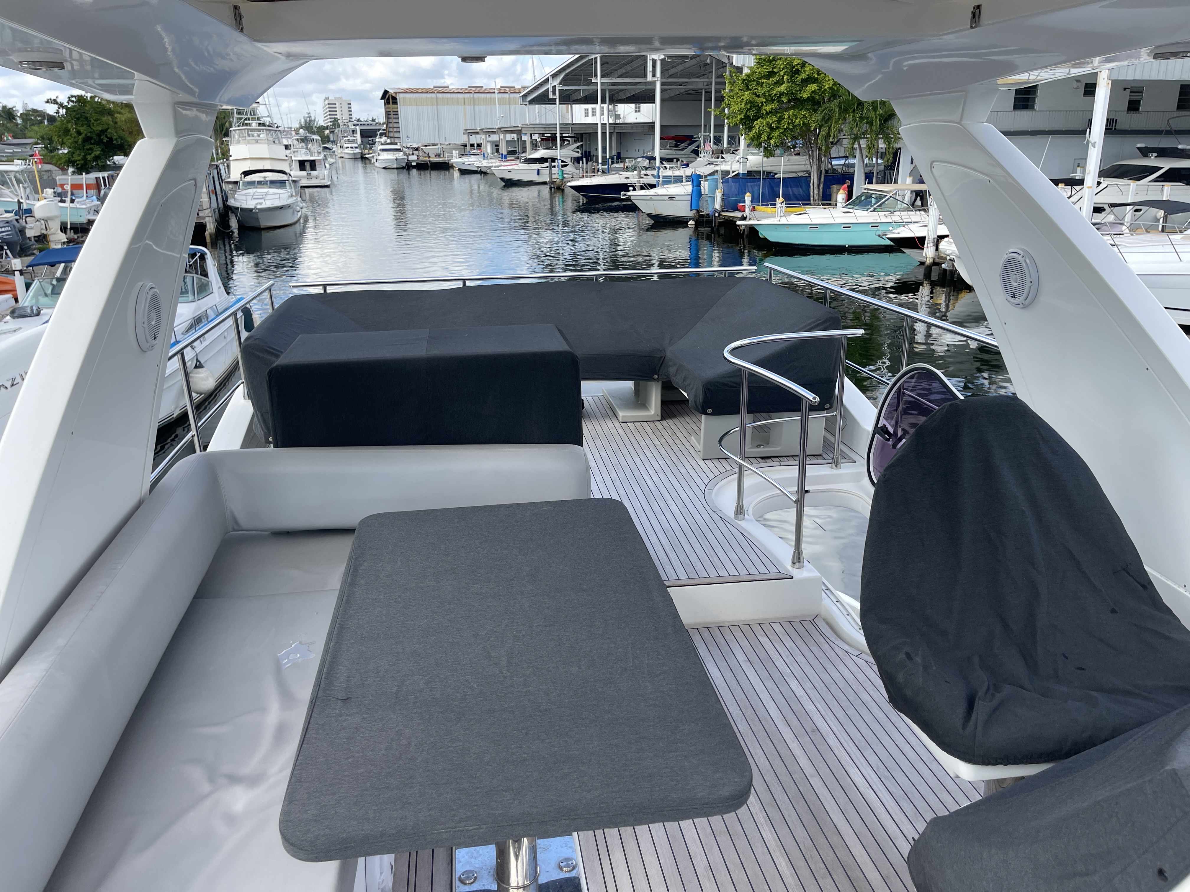 Valentine is the pinnacle of Italian Luxury and gives you the Mega Yacht experience in an affordable size. You and your guests will love the huge living space with the additional fly bridge and aft deck. The bow “front” of the boat is well padded and offers plenty of space for all your guests to comfortably enjoy the ride. On the stern “back” of the boat, the low platform makes is very easy to get in and out of the water. Upstairs, the “Lido Deck” provides a beautiful 360˚ view and plenty seating for 13. As mentioned, the Bow (front of the boat) has plenty of space for lounging, sitting, dancing or just hanging out. Play your favorite music with bluetooth on our professional grade JL Audio system.