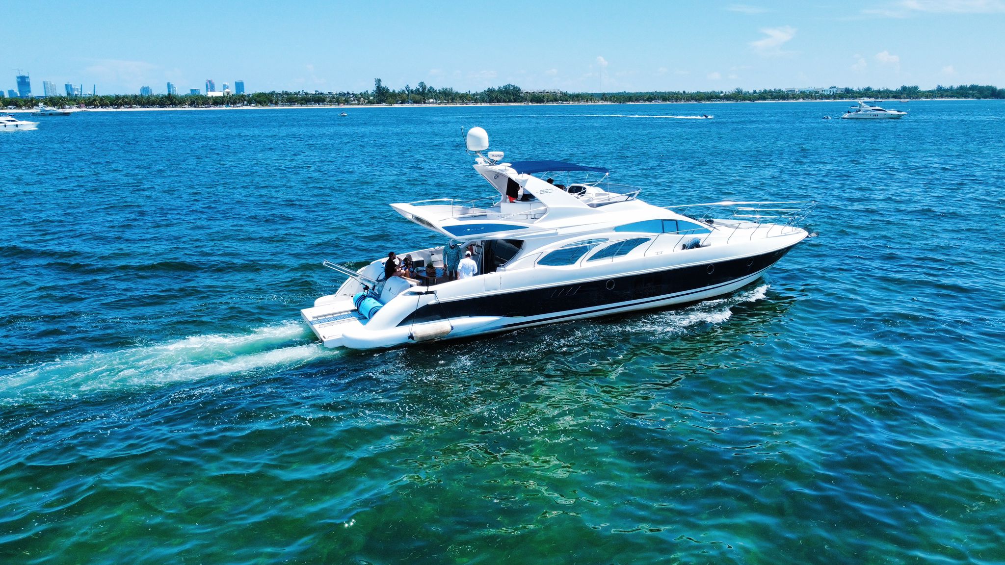 This magnificent yacht offers an inviting space for up to 13 people, promising a day of luxury and adventure on the sparkling waters of Miami.