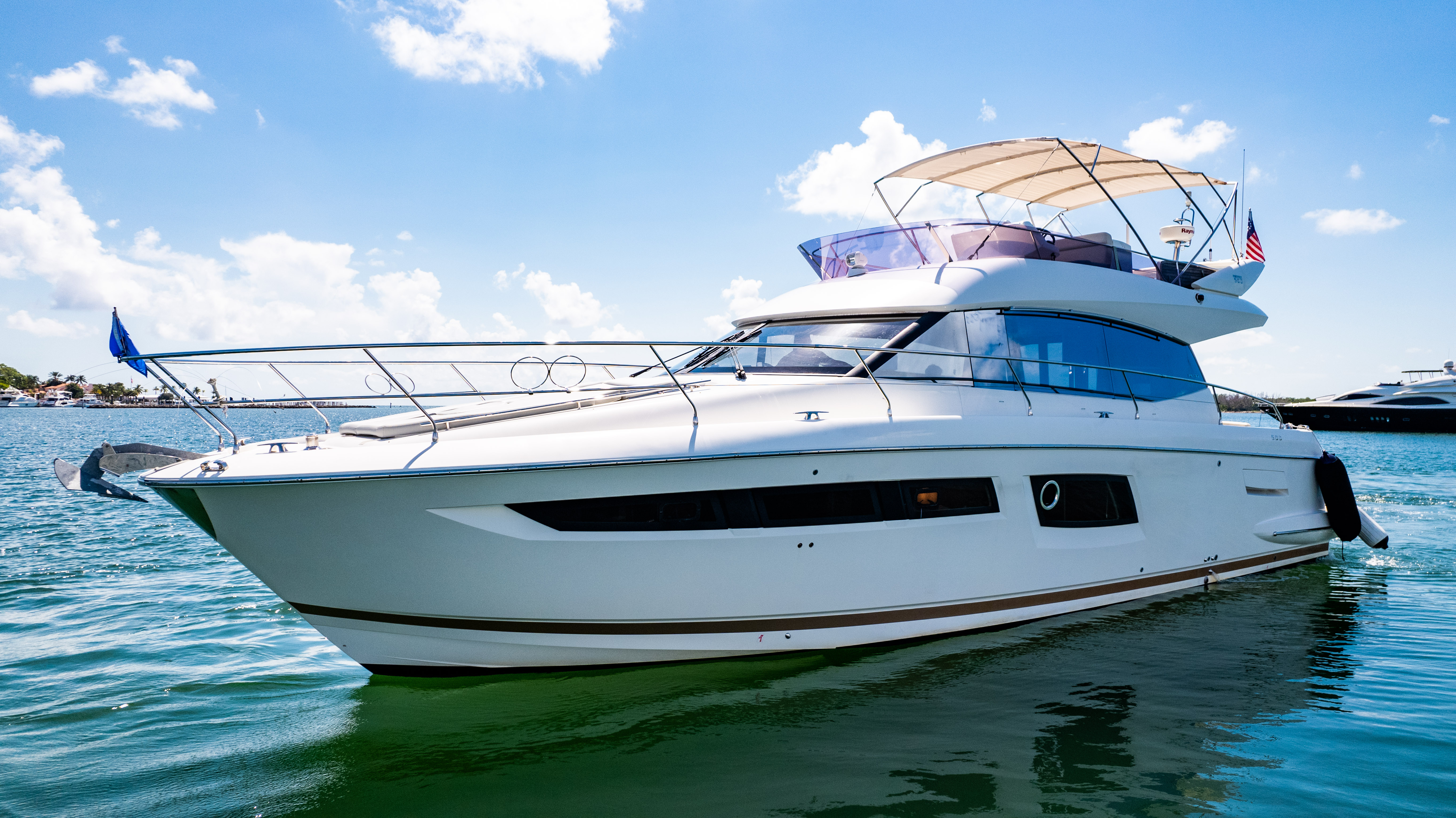 The 52ft Prestige 500 Fly Yacht offers an exceptional blend of luxury, performance, comfort and five star service, making it an ideal choice for those seeking a premium Miami experience . This vessel is meticulously designed to provide a seamless cruising experience, with spacious interiors and cutting-edge amenities that cater to every need for the perfect yacht rental.