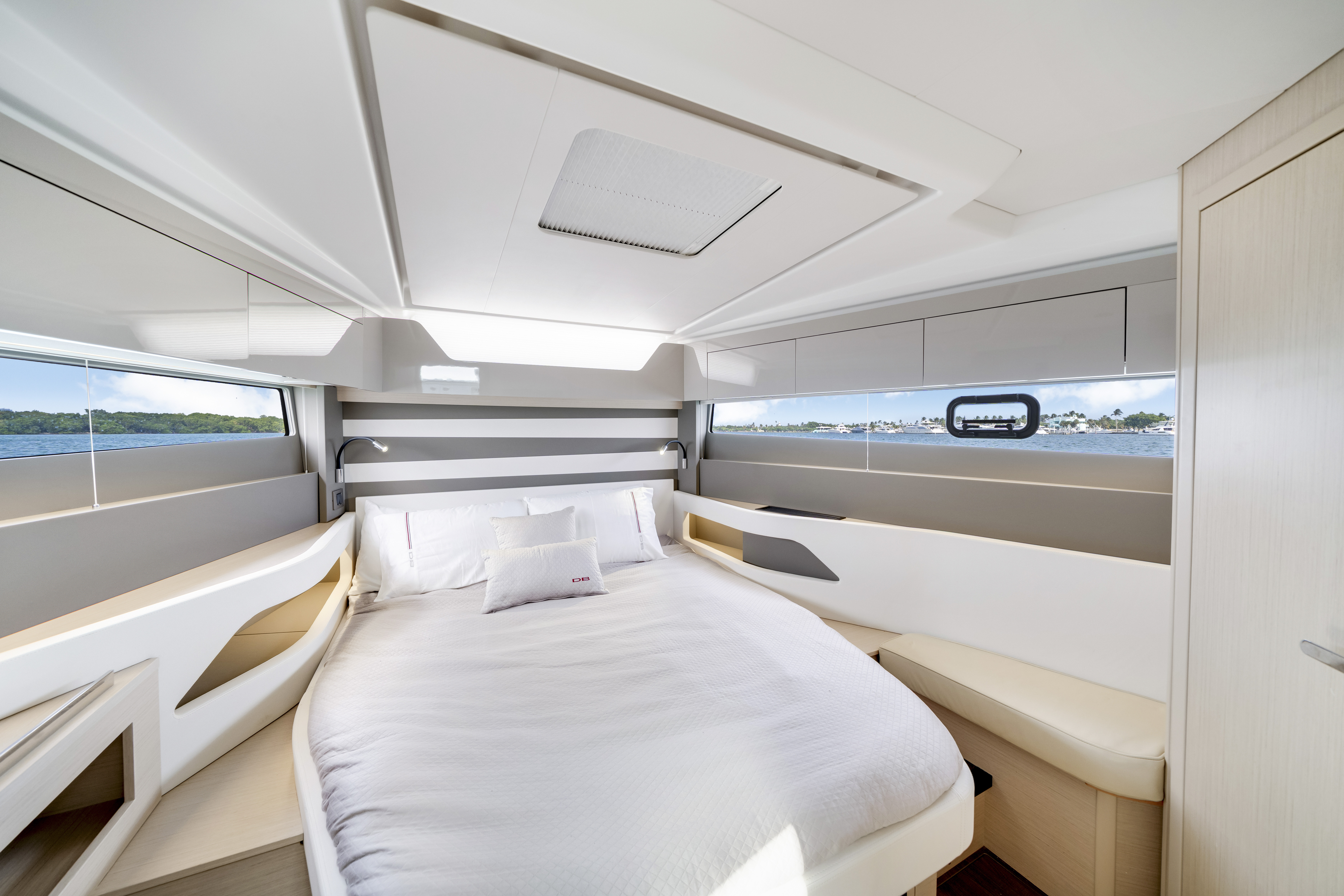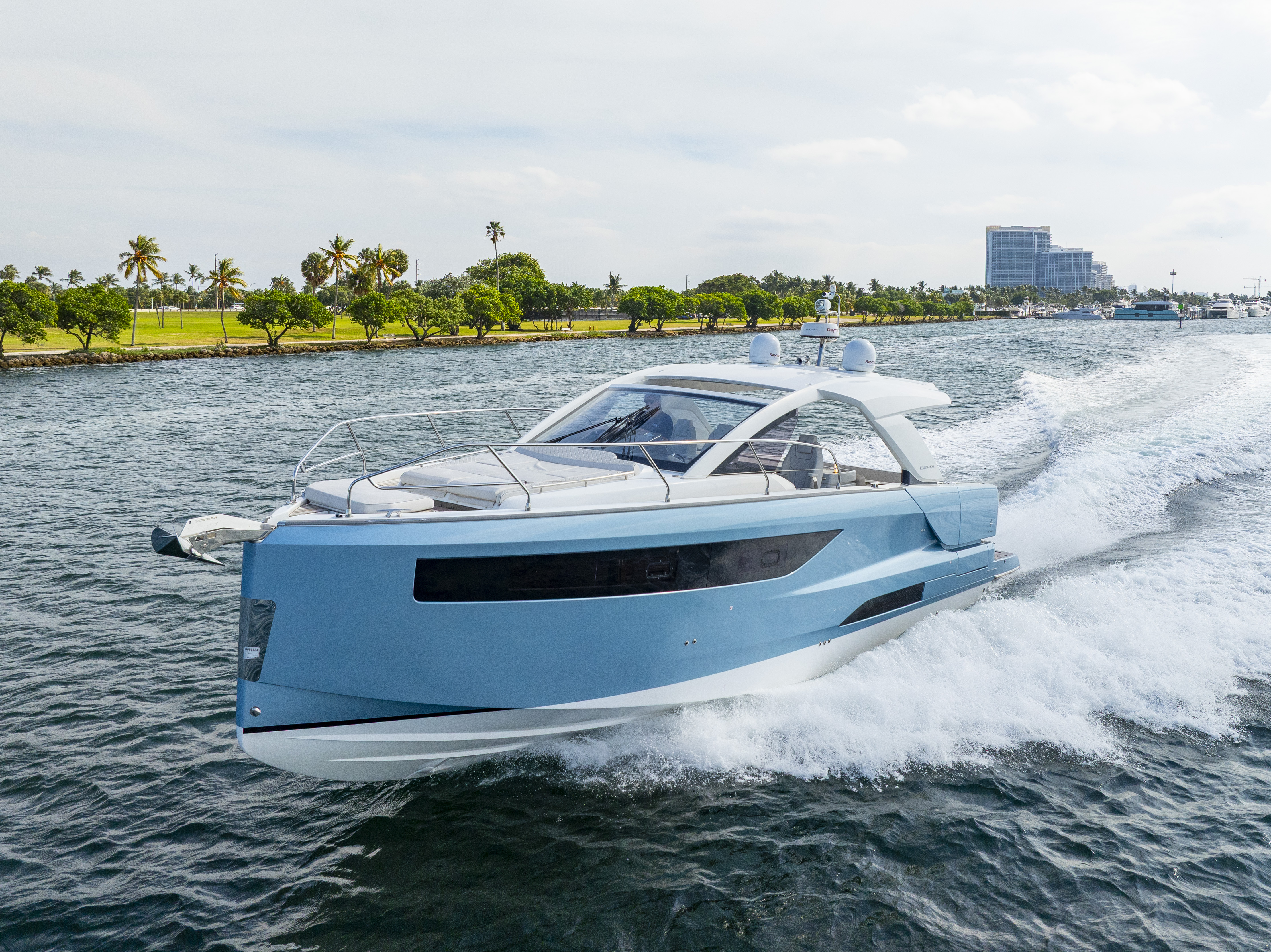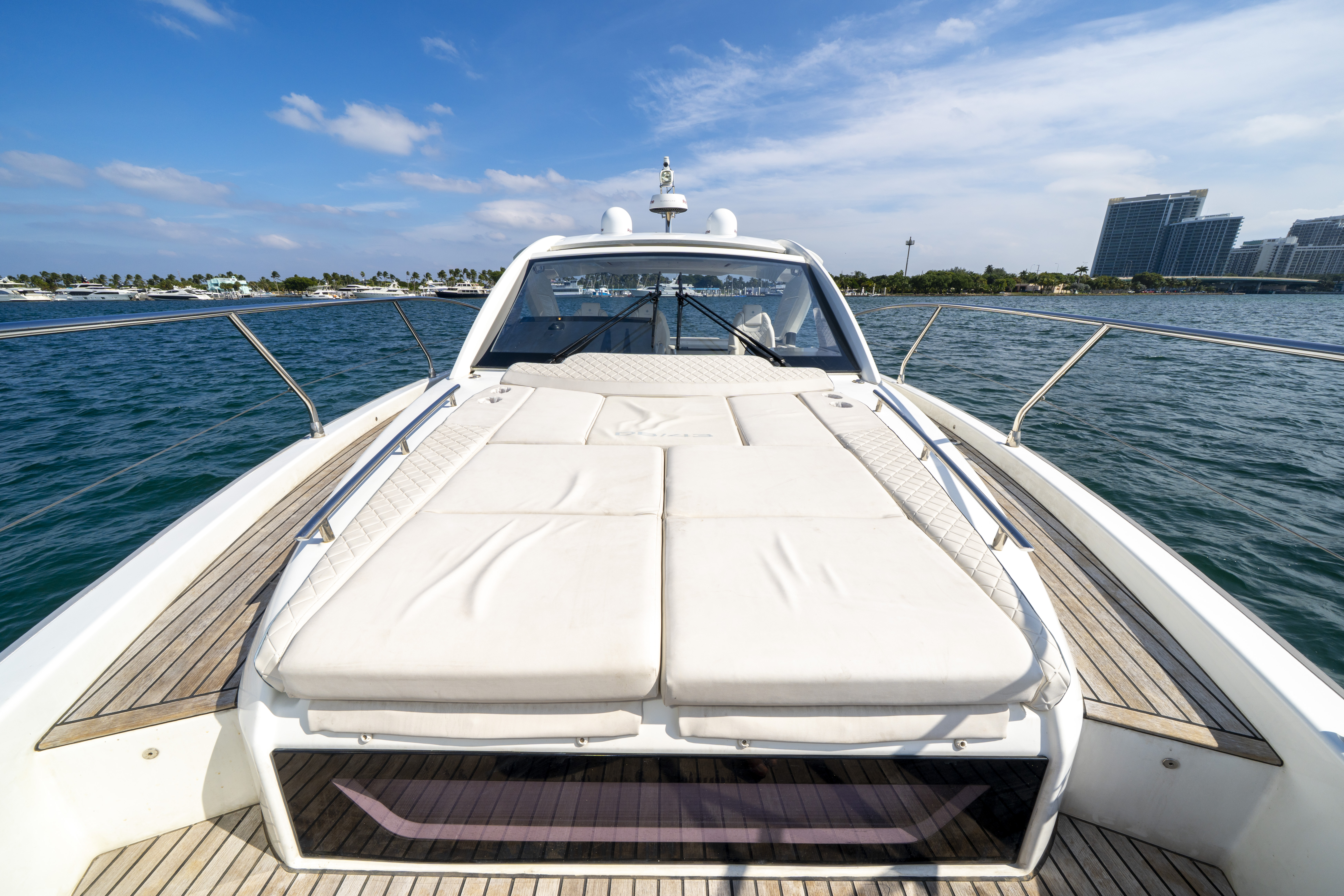 The 2024 Jeanneau DB43 is a masterpiece of contemporary European yacht design, blending sophisticated styling, cutting-edge engineering, and luxurious comfort. Built for both spirited performance and refined leisure, this premium day boat offers the perfect combination of power, elegance, and versatility. Powered by triple 350hp Mercury Verado outboards, she delivers an exhilarating yet smooth ride—effortlessly slicing through open waters or gliding along the Miami coastline and The Bahamas with precision and stability. At 45 feet in length, the DB43 maximizes every inch of space for comfort and social enjoyment. Her open layout invites seamless flow between the cockpit, salon, and beach club terraces, while the electric drop-down side platforms expand the deck for easy access to the water. The foredeck features a large sunpad perfect for relaxation at anchor, and the aft cockpit can be configured for dining, lounging, or water sports. The helm station combines advanced navigation technology with ergonomic design, ensuring a superior experience for both captain and guests. Below deck, the DB43 offers a bright and refined interior with two cabins, a fully equipped galley, and a spacious bathroom—making her ideal for extended day trips or overnight escapes. Equipped with a powerful stabilizer and remarkably seaworthy, the Jeanneau DB43 redefines the modern luxury day boat. She is the ultimate choice for exploring Miami, the Keys, or the Bahamas in pure comfort and style. Suggested Itinerary: Your adventure aboard begins here. Get ready to experience the perfect blend of excitement and serenity on the waters of Biscayne Bay. Whether your mood is for adventure, relaxation, or both, this yacht offers an unforgettable day at sea. Morning: Begin your journey with a smooth, high-speed cruise across Biscayne Bay. Admire the vibrant Miami skyline and the stunning waterfront estates of Star Island as you enjoy the power and elegance of the DB43. Midday: Anchor at a quiet sandbar to swim or snorkel in the crystal-clear water, or explore the scenic mangroves and islands nearby. Thanks to her shallow draft and hydraulic terraces, the DB43 can access serene coves and beaches larger yachts can’t reach. Afternoon: Cruise towards Haulover Sandbar or the iconic Stiltsville houses for a lively and social atmosphere. With ample deck space and water toys available, it’s the perfect time to enjoy water sports, sunbathing, or simply relaxing on the floating mat. Evening: Head back toward the city as the sun sets over the Miami skyline. The DB43’s expansive aft deck is the ideal setting for cocktails, music, and panoramic views as you end your day in unforgettable style. Details Up to 13 guests (to comply with regulations) 2 bedrooms / 1 bathroom Captain (gratuity paid separately) Cooler, ice, sodas, and water Premium Bluetooth sound system Large floating mat Check the calendar before finalizing your booking