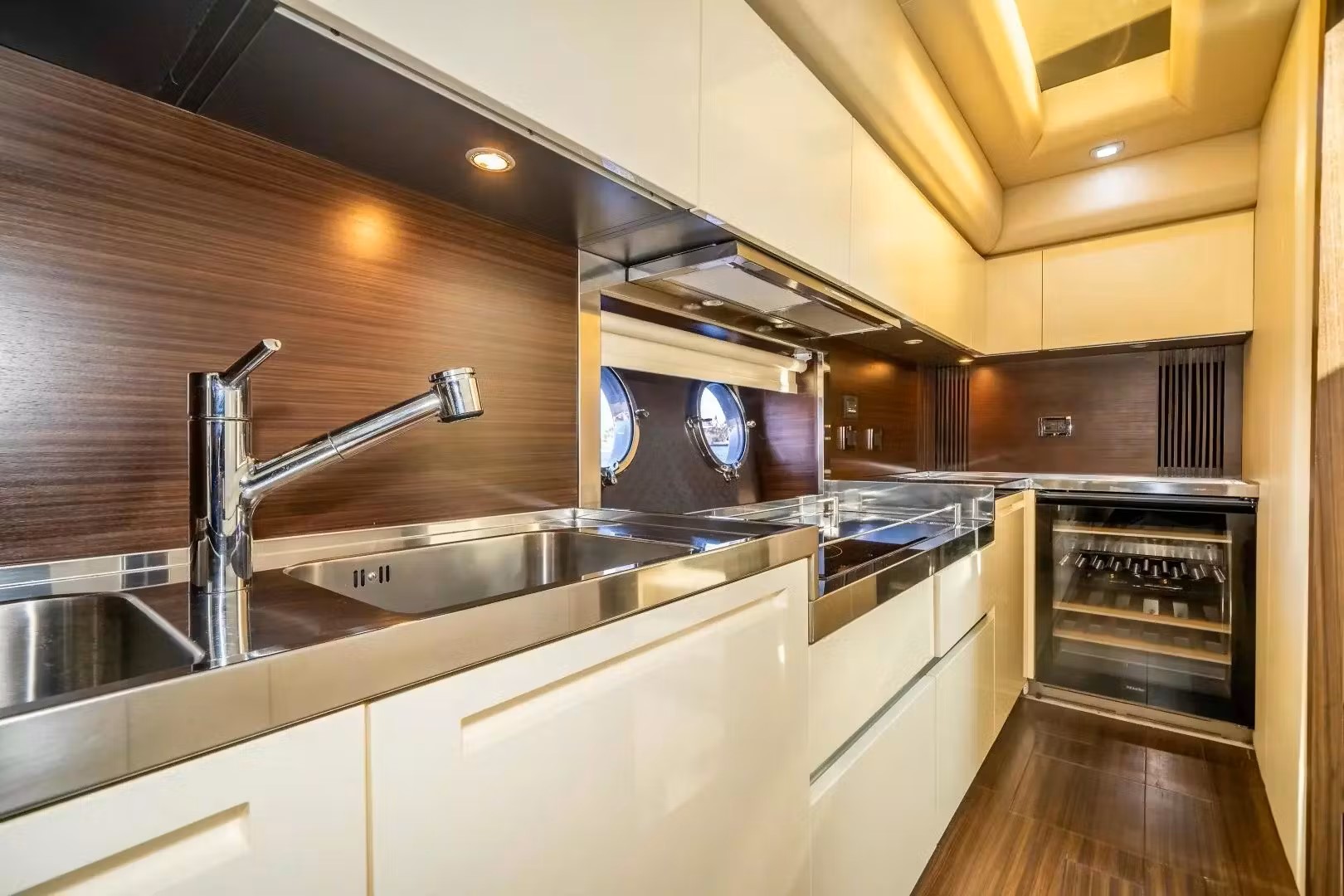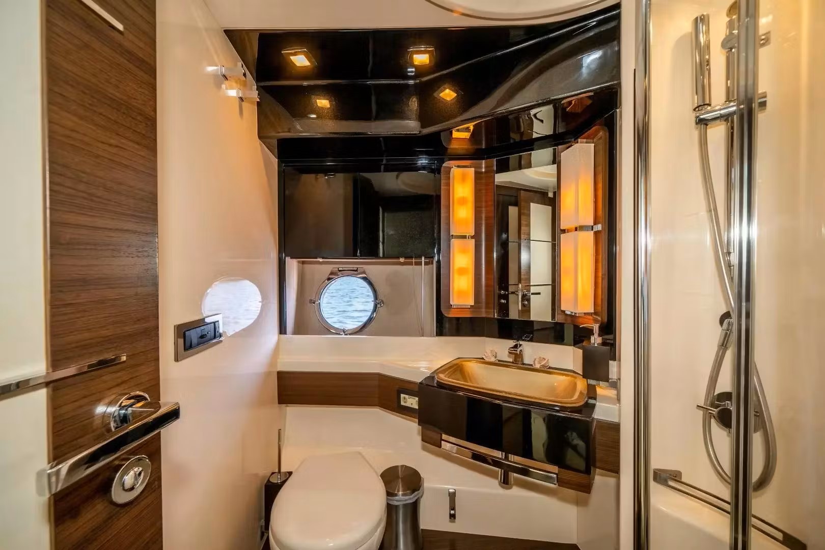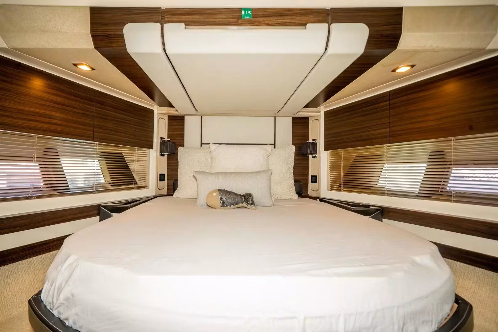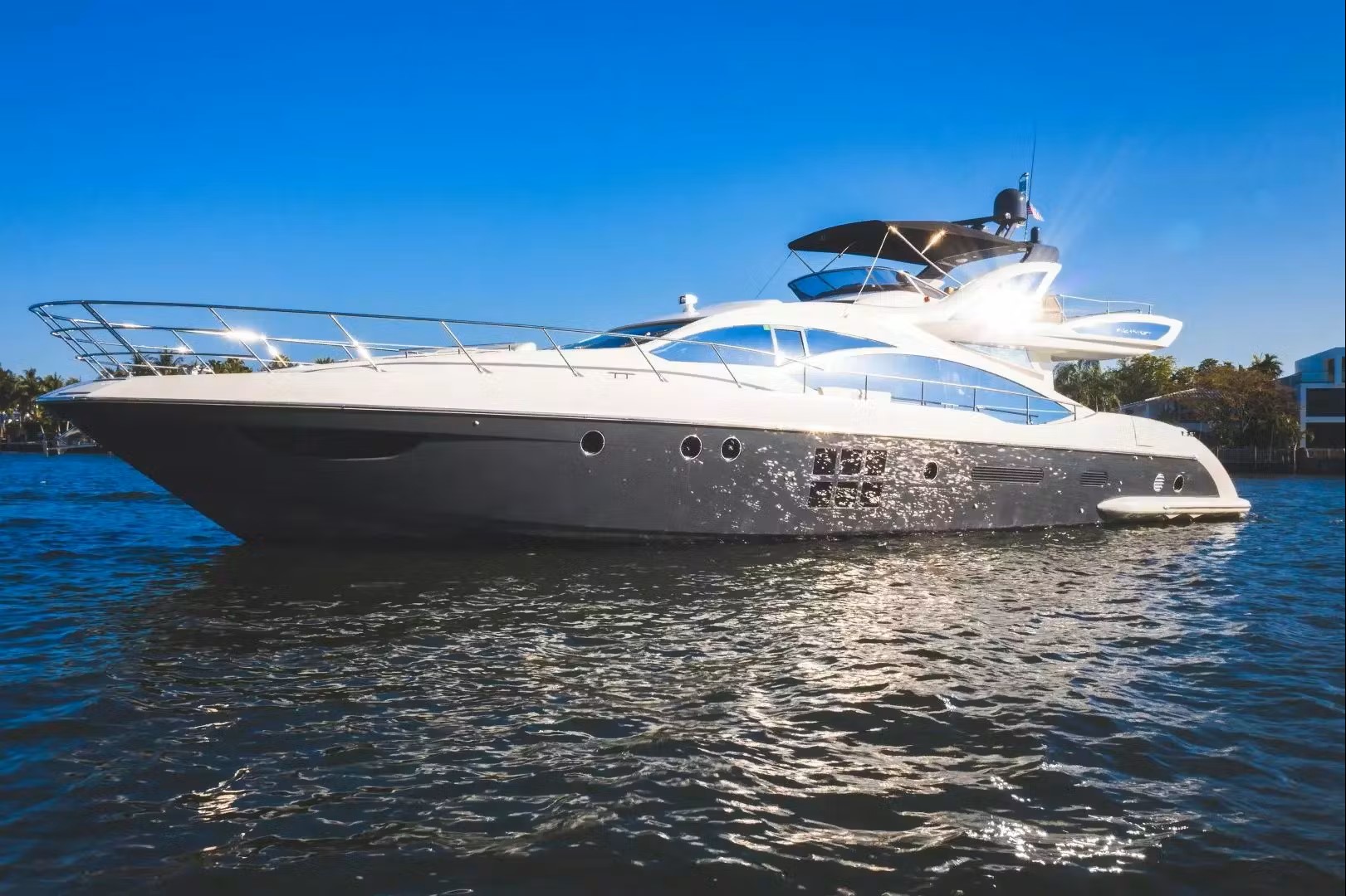The yacht is fully equipped with latest state of the art entertainment extras. Azimut 72' lower deck features four fabulous staterooms including the master cabin, the VIP cabin and two twin cabins. The elegant combination of the dark woodwork, the glass bathrooms and the fabrics results to a minimal and relaxing interior. Azimut 72' motor yacht has a stylish aft deck and foredecks offer ample sunbathing space, while the aft deck can also be used for informal drinks and moments of relaxation.