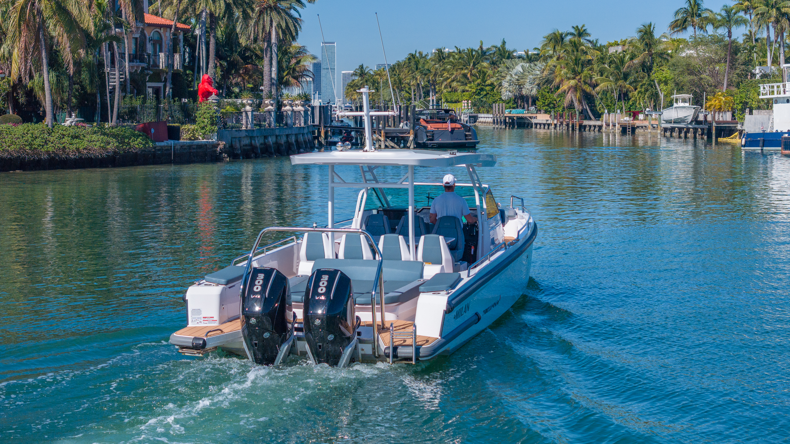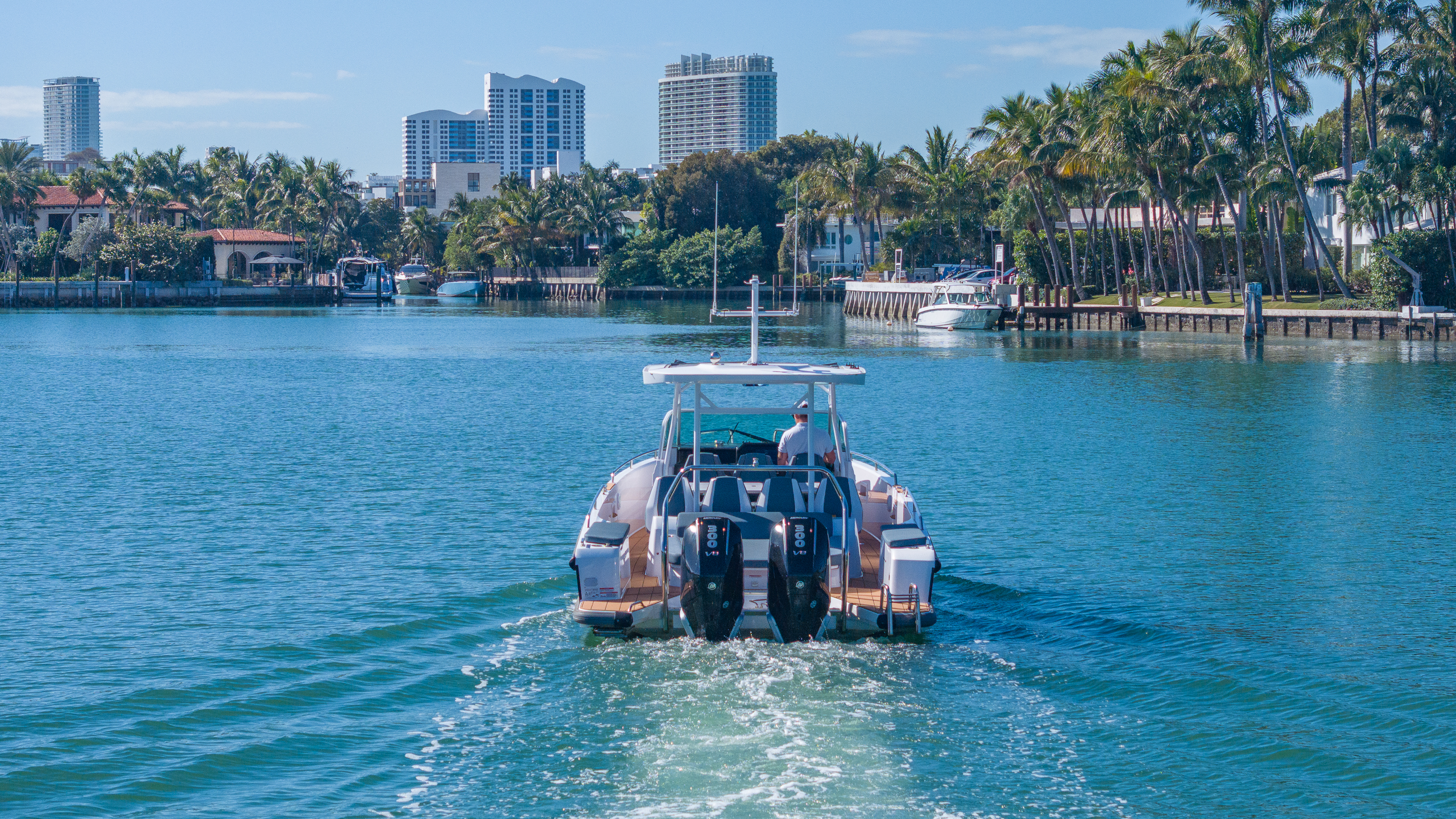 The 2025 Axopar 38 Sun-Top Mediterranean Edition is a masterpiece of modern Scandinavian design, specifically tailored for the vibrant energy of the Miami coastline. Known for its sleek, ultra-modern profile and pioneering hull design, this 38ft vessel combines high-performance engineering with the sophisticated finish of a luxury day-boat. Perfectly situated at the prestigious Miami Beach Marina, she provides immediate access to the Atlantic and the most exclusive waterfronts in South Florida. Powered by high-performance Mercury 300hp outboard engines, the Axopar 38 delivers an incredibly smooth, stable ride with impressive speed and precision maneuverability. Whether you are planning a high-energy day on the water or a refined exploration of hidden coves, this boat represents the pinnacle of style and versatility. Her exterior spaces are designed for the ultimate Miami lifestyle, featuring an expansive aft deck with a flexible multi-cabin layout, a walk-up wet bar, and a large canvas roof that opens to bring the outdoors in. This 2025 model features elegant, minimalist finishes and state-of-the-art entertainment systems, ensuring every moment on board feels brand new. Suggested itinerary: Your journey begins at the world-class Miami Beach Marina, the perfect gateway to the best of South Beach and beyond. Get ready to experience the iconic Miami skyline from the most luxurious seat on the water. Morning: Depart from Government Cut and cruise past the ultra-exclusive mansions of Fisher Island and Star Island. Experience the agility of the Axopar as you head toward the historic Cape Florida Lighthouse. Midday: Drop anchor at the famous Nixon Sandbar in Key Biscayne. Use the easy-access swim platforms to dive into the shallow, turquoise waters. The Axopar’s shallow draft allows you to get closer to the action than almost any other boat in its class. Afternoon: Cruise through the scenic Stiltsville houses before heading back toward the city. Stop for a high-end lunch docking at The Standard or cruise along the Miami River to see the city's vibrant urban transformation from the water. Evening: Enjoy a champagne toast on the aft deck as the sun dips behind the downtown skyline. The proximity of Miami Beach Marina means you’ll enjoy a stunning "golden hour" cruise along the South Beach shoreline before a seamless return to the dock. Details: Up to 13 guests to comply with regulations Captain (gratuity paid separately) 2 Coolers, Ice, Sodas, Water, and Towels Premium Bluetooth Sound System Confirm availability before booking